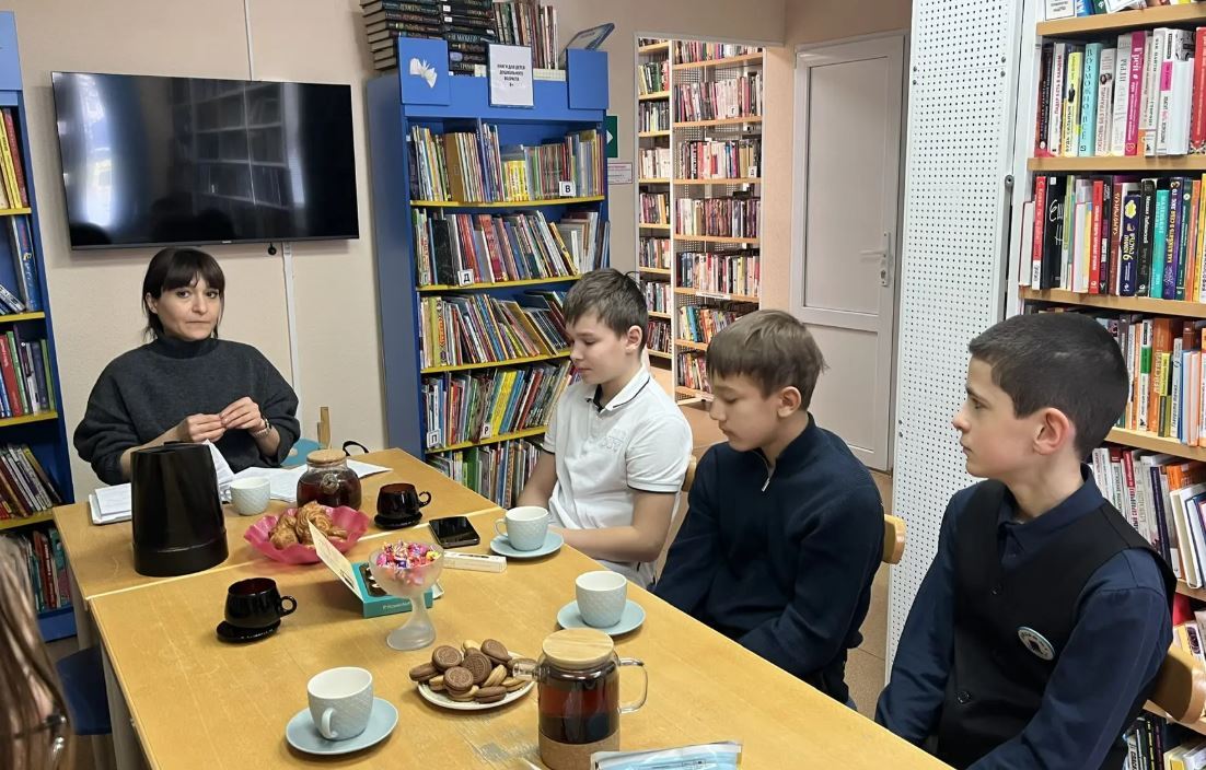 Встреча была посвящена творчеству удивительной писательницы Надежды Александровны Лохвицкой, известной всему миру под псевдонимом Тэффи. Библиотекари встретили нас радушно, пригласили за большой стол, и мы устроили литературное чаепитие. Пока заваривался ароматный чай, ребята делились впечатлениями о прочитанных произведениях, обсуждали характеры героев и удивительный юмор писательницы.